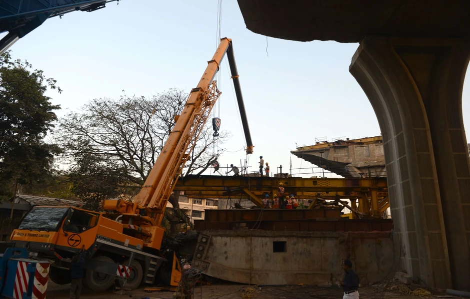 Nadvožnjak je deo velikog građevinskog projekta za novi terminal na glavnom međunarodnom aerodromu u Mumbaju.