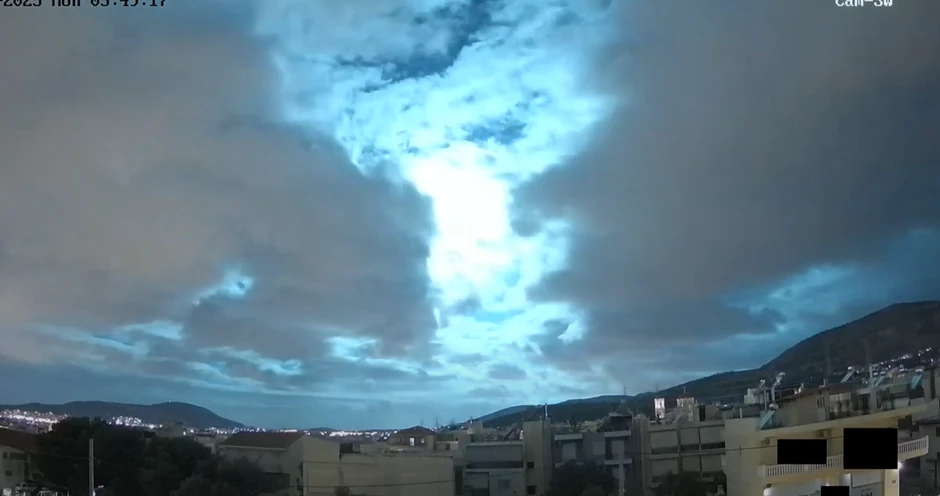 Na snimku se vidi tamno, oblačno nebo. Nekoliko sekundi kasnije, jaka svetlost obasjava nebo i Atinu, a zatim nestaje.