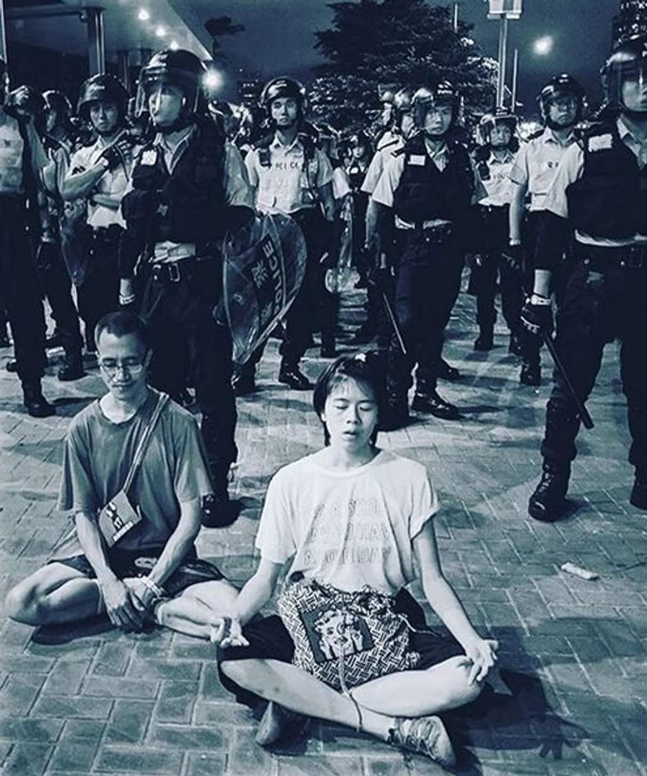 Lam Ka Lo (26) odlučila je 11. juna da sedne pravo ispred redova policajaca sa štitovima, zatvori oči i meditira. Fotografi sa svih strana sveta uhvatili su ovaj trenutak, a fotografija je ubrzo procirkulisala internetom. Ljudi su počeli da je zovu “štit devojka”.