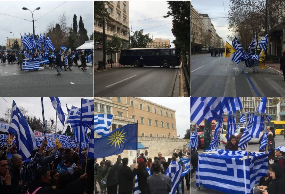 Zbog protesta grčka prestonica je od jutarnjih sati u blokadi i pod "opsadom" policije. Na demonstracijama su se okupili Grci koji se protive upotrebi reči "Makedonija" u imenu bivše jugoslovenske republike.