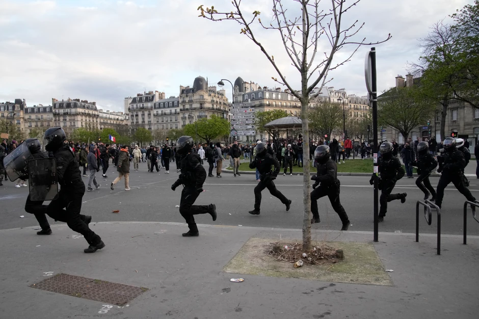 Policija u Parizu upotrebila je večeras palice, suzavac i šok bombe da razbije masu demonstranata koji su protestovali zbog penzione reforme, javio je dopisnik RIA Novosti.