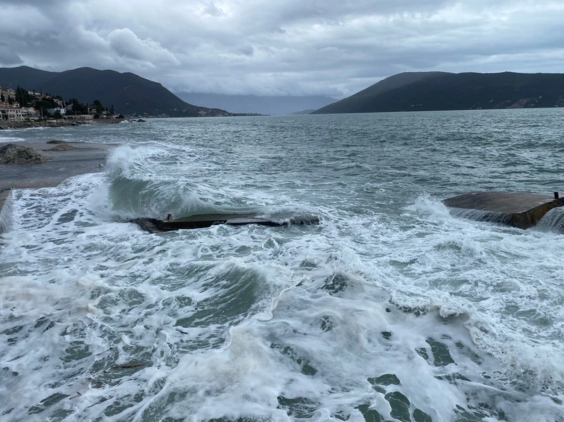 Udari juga koji su izmereni na meteo stanici Obosnik u Boki sinoć su dostizali brzinu od čak 50 čvorova (skoro 100 kilometara na sat) zbog čega su se ne samo na otvorenom moru, već i u zalivu, podigli veliki talasi.