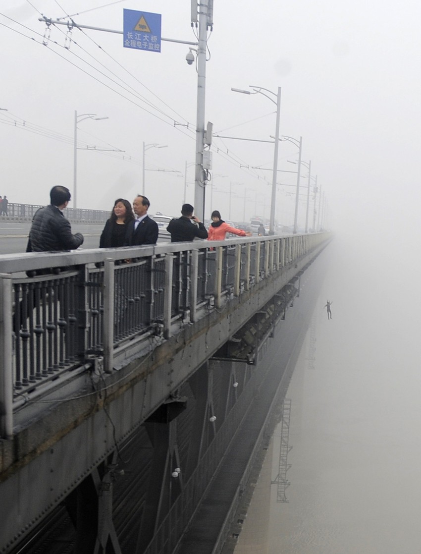 Kineska policija traga za mladim parom, koji je juče skočio s mosta na reci Jance u Vuhanu, glavnom gradu provincije Hubei. Njihov skok slučajno je zabeležio fotoreporter lokalnog lista, koji je radio na tekstu o zagađenju vazduha pored reke.
