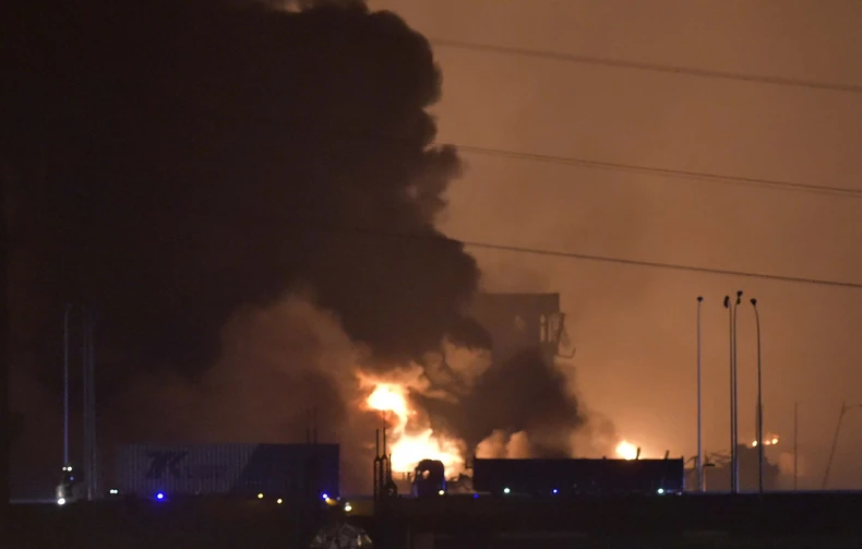 Vatra je izazvala višestruke eksplozije. Vatrogasci su naveli da je više rezervoara uništeno, a najmanje tri su eksplodirala.