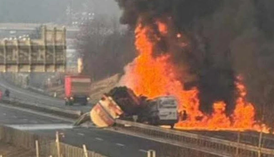 Teška saobraćajna nesreća dogodila se jutros na auto-putu prema Ljubljani. Prema prvim informacijama, učestvovali su kombi i cisterna koja je eksplodirala, a plamen je zahvatio oba vozila.