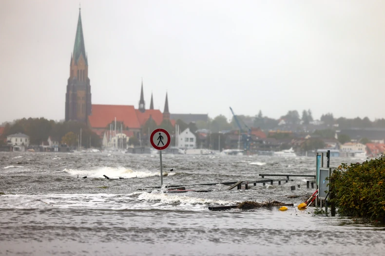 U Flenzburgu, nemačkom gradu južno od granice sa Danskom, nivo vode porastao je za više od dva metra na najviši nivo zabeležen tokom poslednjih 100 godina, Iz bezbednosnih razloga isključena je struja u poplavljenim delovima grada.