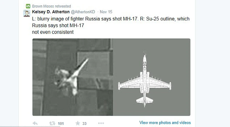 Ubrzo nakon što su na ruskoj državnoj televiziji "procurile" satelitske fotografije koje dokazuju da je ukrajinski borbeni avion srušio MH17, javili su se internet stručnjaci za avijaciju sa gomilom dokaza da je snimak lažan.