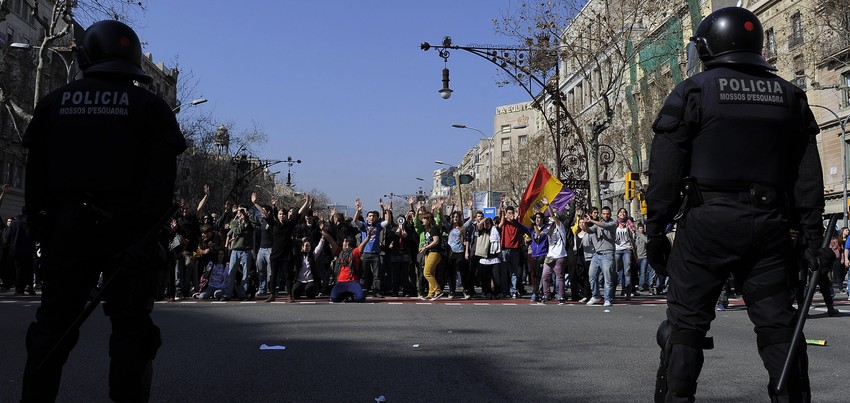 Više studenata uhapšeno je danas u Barseloni tokom demonstracija zbog mera štednje koje je usvojila Vlada Španije. Jedan od studenata Pau Bronsom (22) rekao je da su policajci palicama udarali demonstrante i ispaljivali gumene metke.