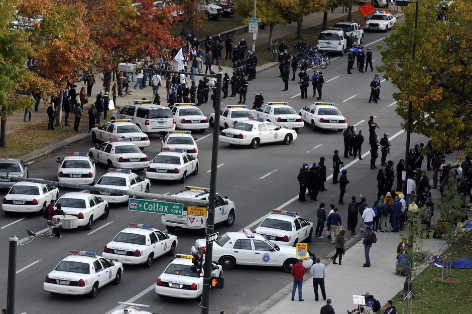 Stotine policijaca i specijalaca uletelo je potom u park, a ulice oko parka bile su zatvorene satima za saobraćaj, dok su tenzije rasle. Policija je formirala krug oko šatora "ogorčenih" u denverskom parku i uhapsila 15 učesnika protesta.