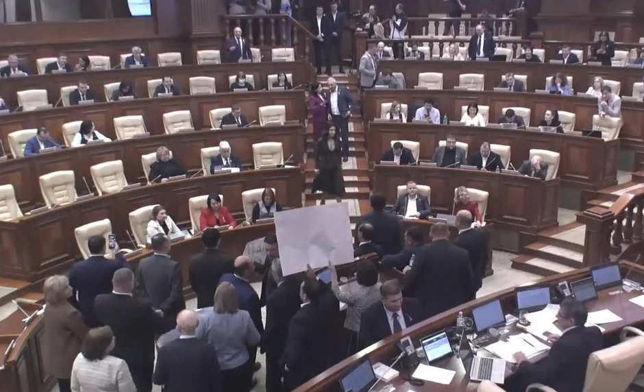Opozicija u moldavskom parlamentu blokirala je danas govornicu, protestujući zbog namere da se naziv državnog jezika promeni iz moldavskog u rumunski, javlja dopisnik RIA Novosti.
