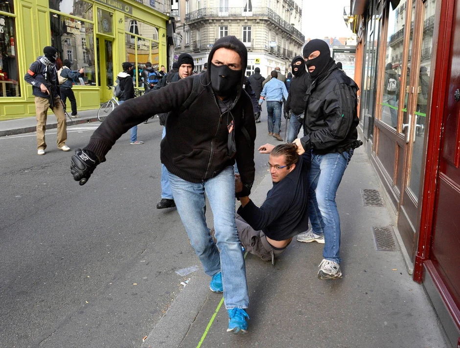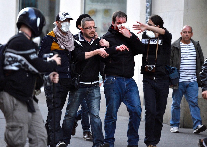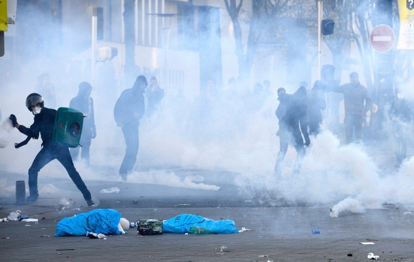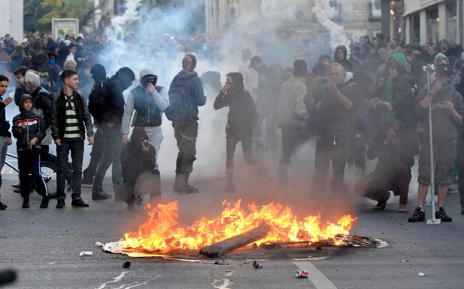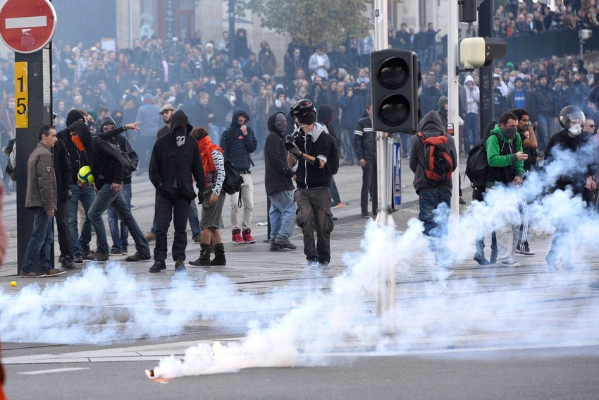Policija je u Nantu bacila suzvac na maskirane demonstrante koji su palili vatre i uličnim znacima gađali polciju. Slični neredi su izbili u Tuluzu gde su vlasti saopštile da su neki od učesnika, do tada mirnog protesta, uništili prozor banke i javnu imovinu.