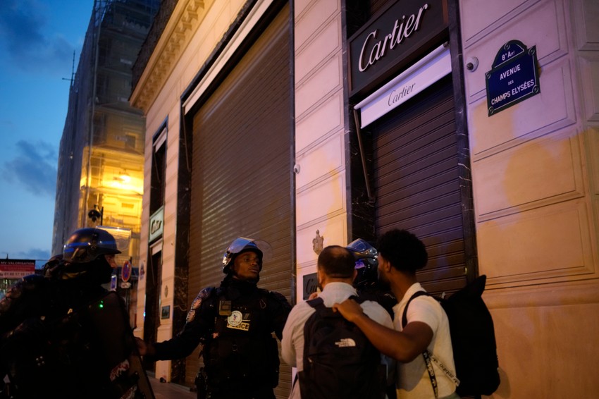 U prodavnicama luksuznih brendova kao što je Roleks, postavljene su dodatne kamere, zbog straha od mogućih večerašnjih protesta nakon Nahelove sahrane.