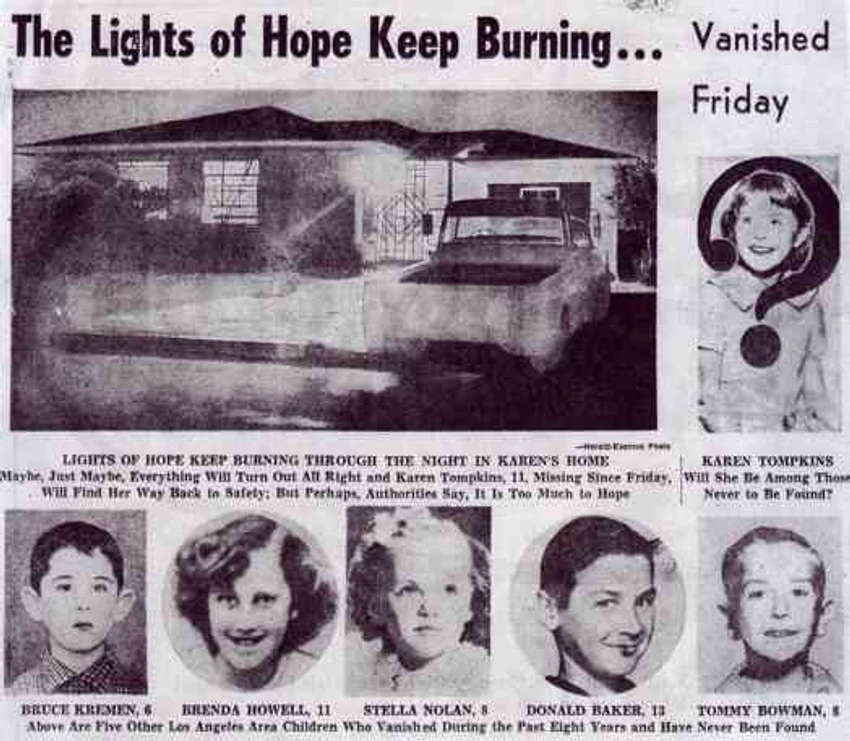 U julu 1956. godine, 11-godišnja Brenda Hauel je iz iz Severne Karoline posetila Los Anđeles kako bi videla svoju sestru. Ubrzo je počela da se druži s dečakom iz susedstva, 13-godišnjim Donaldom Bejkerom. Ujutro 6. avgusta 1956. dvoje dece selo je na svoje bicikle kako bi otišli da se igraju blizu kanjina San Gabrijel, blizu planine Glendora. Od tada ih niko nikada nije ni čuo ni video, piše "LA tajms" a prenosi "Express".