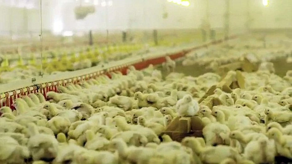 Desetine hiljada pilića borave u ogromnim halama svega 35 dana pre nego što će ih ubiti gasom.