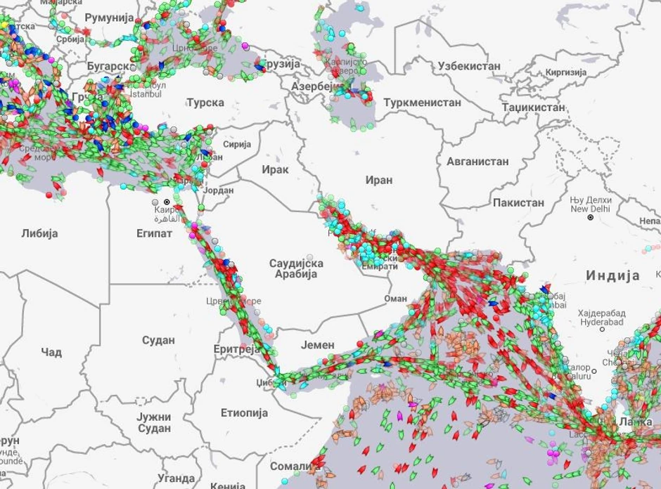 Aplikacije i sajtovi za praćenje pomorskog saobraćaja pokazuju velike razmere gužvi i na okolnim morima.