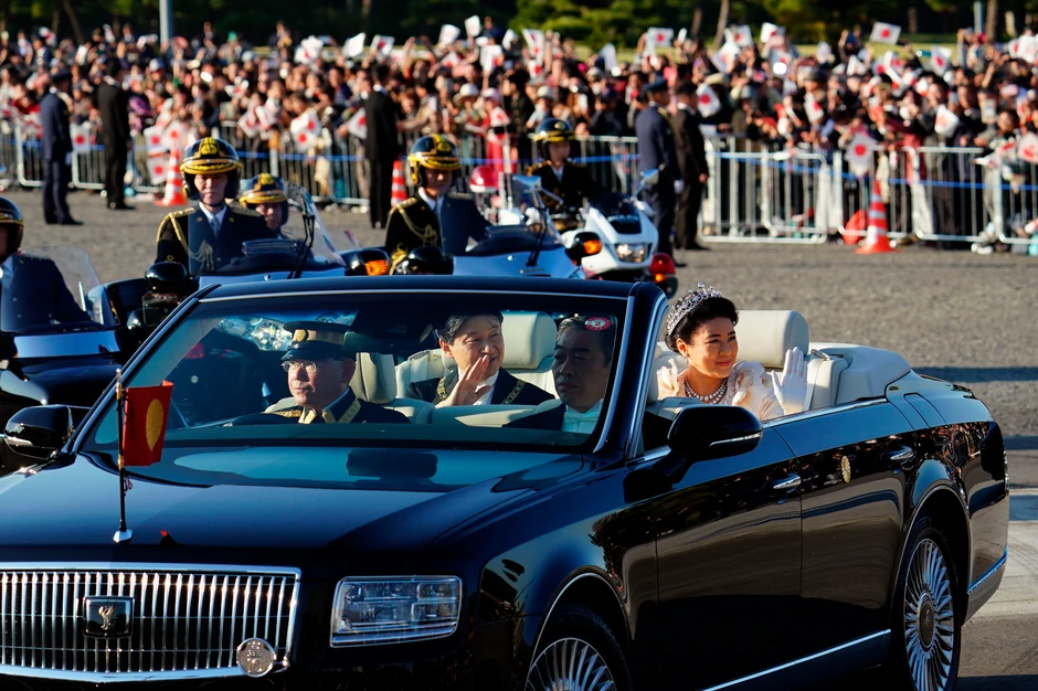 Japanski car Naruhito i carica Masako provozali su se danas centrom Tokija u svečanoj povorci kako bi obeležili njegovo stupanje na tron, dok su okupljeni građani mahali nacionalnim zastavama i snimali ih mobilnim telefonima.