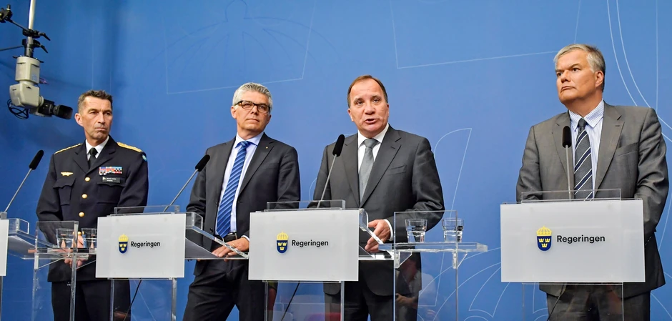 (L-D) Vrhovni komandant oružanih snaga Švedske Mikael Bajdern, direktor policije Anders Tornberg, premijer Stefan Leven i direktor Agencije za saobraćaj Jonas Bjelfvenstam