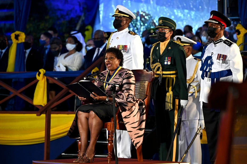 Premijerka Mia Motli, proglasila je tokom cerenomije pevačicu Rijanu poreklom sa Barbadosa za nacionalnog heroja. Ceremoniji je prisustvovao prestolonaslednik britanske krune, princ Čarls koji je poručio da je stvaranje republike "nudi nov početak".