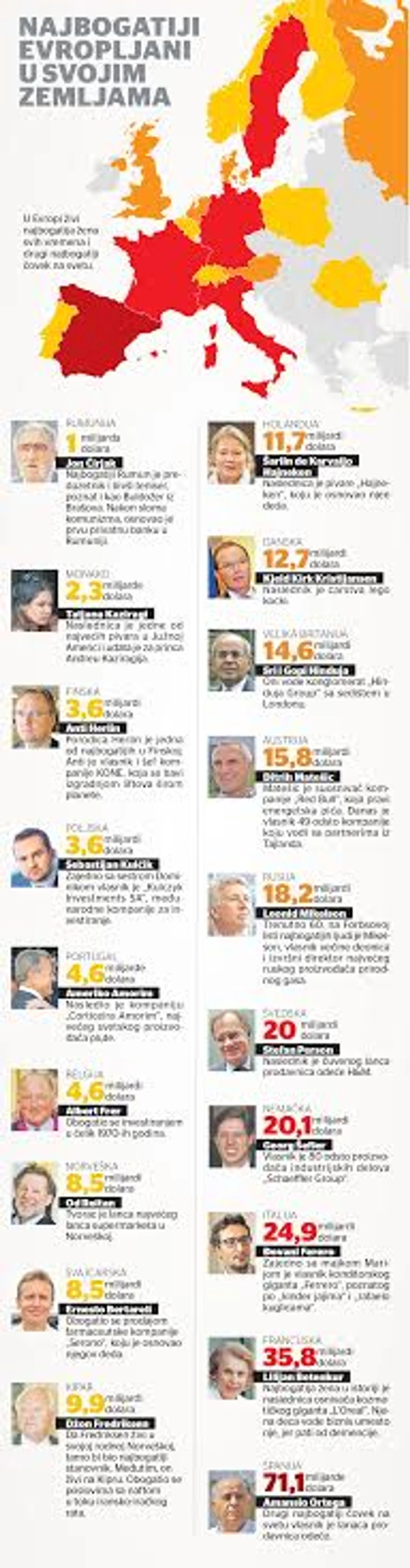 Pogledajte u galeriji ko su najbogatiji ljudi u evropskim zemljama.