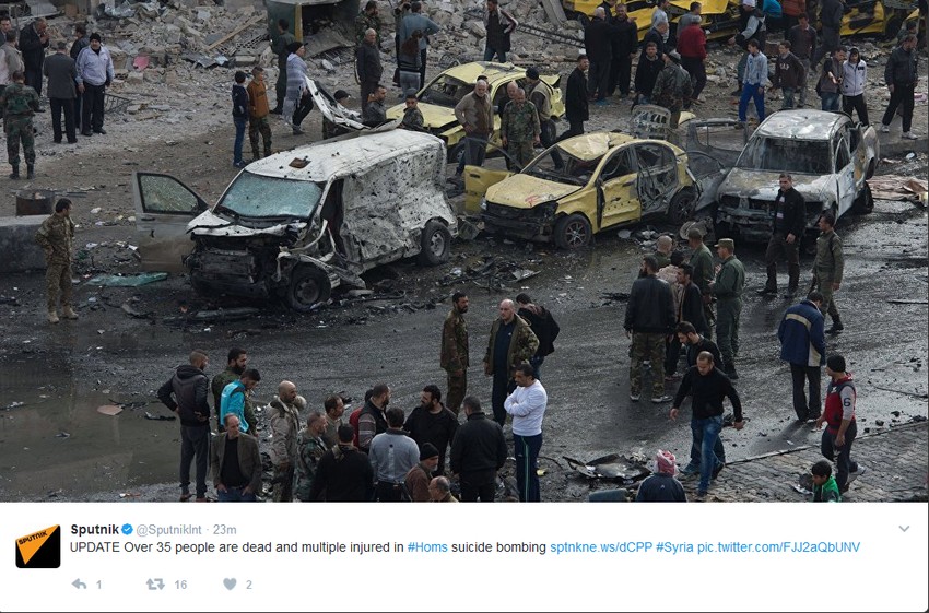 U napadu bombaša samoubica u Homsu, izvršenom u subotu, 25. februara, poginulo je više od 35 ljudi.