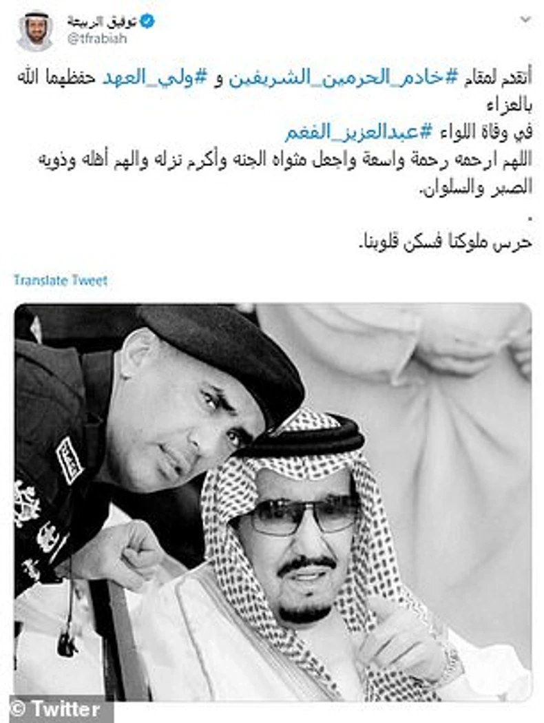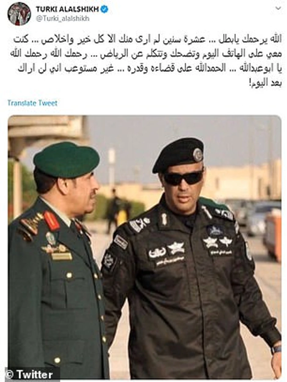 Povodom generalove smrti savetnik Kraljevskog suda Turki al Šeik napisao je na Tviteru: