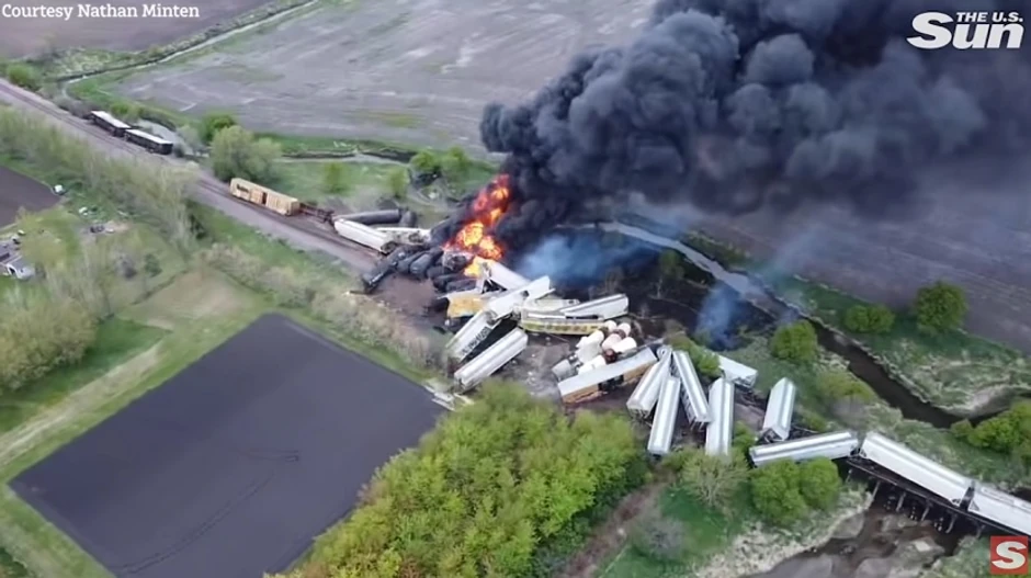 Kod grada Siblija u američkoj državi Ajova, železnička kompozicija kompanije "Junion Pacifik" koja je transportovala cisterne i vagone sa opasnim materijama iskočila je tokom popodneva iz šina, nakon čega je buknuo požar.
