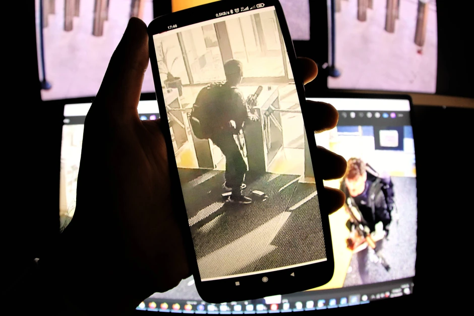 Dok je teroristkinja viđena ispred zgrade, drugi terorista, naoružan jurišnom puškom, snimljen je kako ulazi u zgradu.