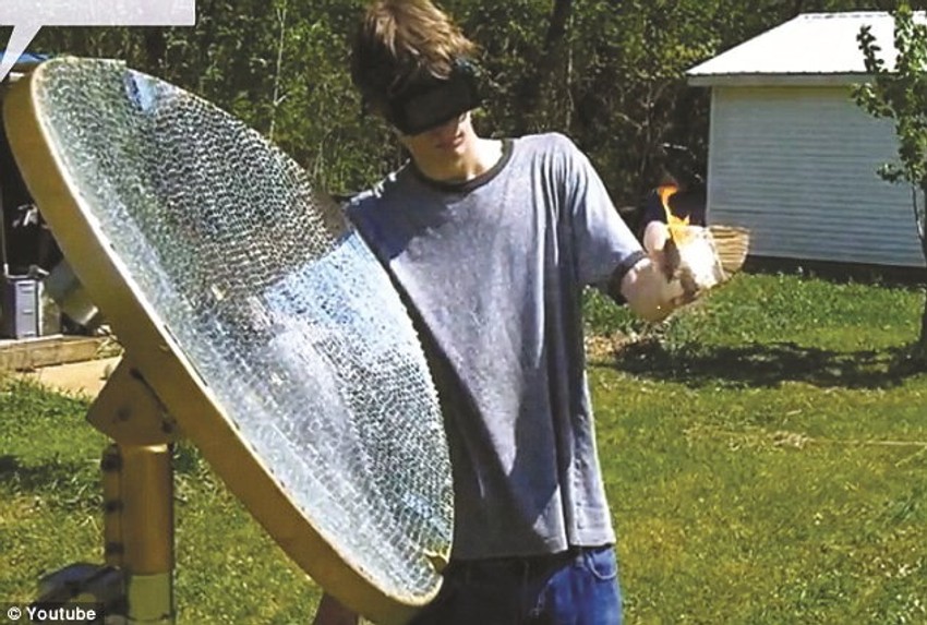 INDIJANAPOLIS - Erik Džekmejn, 19-godišnjak iz Indijane, konstruisao je pomoću obične satelitske antene od fiberglasa i 5.800 komadića ogledala raspoređenih po njoj napravu koju je nazvao R5800 solarni “zrak smrti”, sposobnu, ako se pravilno usmeri, da na površini od nekoliko centimetara razvije energiju 5.000 puta jaču od sunčeve svetlosti.