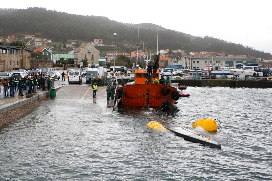 Španska policija danas je uspela da izvuče potopljenu podmornicu, na kojoj se, kako veruju, nalaze tone kokaina u luci Aldan na severozapadu zemlje, i započela je pripreme za vađenje tereta.