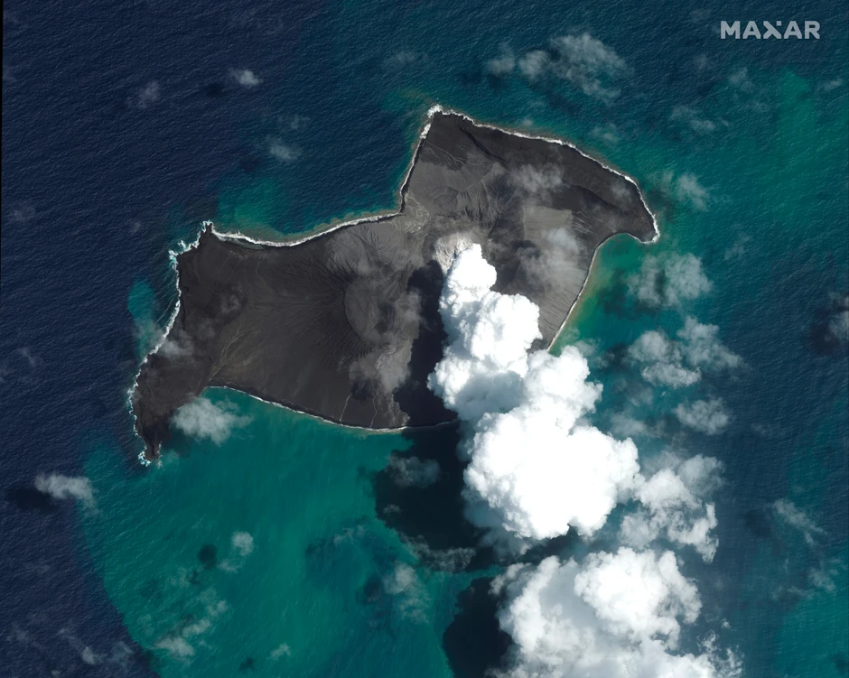 Erupcija vulkana na Tongi (Foto: MAXAR Technologies / Tanjug/AP)