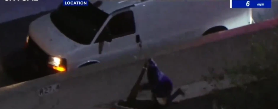 Direktan prenos televizije iz Kalifornije emitovao je užasnu scenu kada je osumnjičeni koji je bežao od policije pao pod automobil koji ga je pogodio u punoj brzini. On je poginuo na licu mesta, pre nego što su kamere uspele da se prebace na drugi kadar.