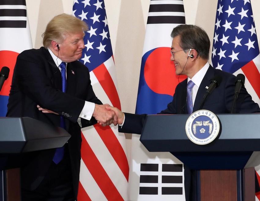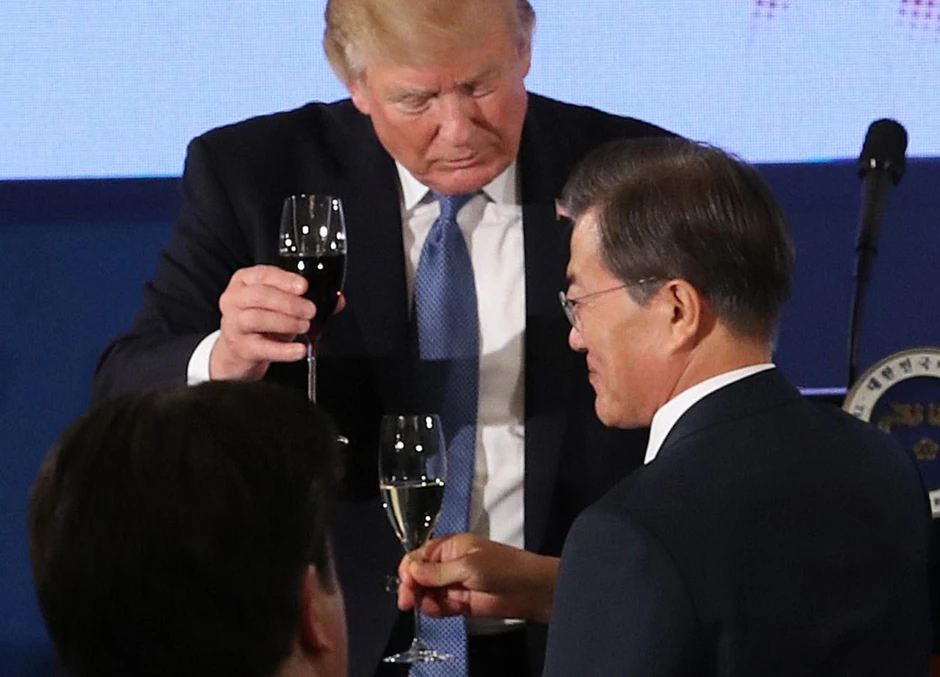 Tramp je juče, uz zvuke Sinatrinog hita "My Way" (pesme koja je bila jedna od zaštitnik znakova Trampove kampanje), dočekan u Seulu, gde je potom sa predsednikom Mun Džae Inom nazdravio "miru i stabilnosti".