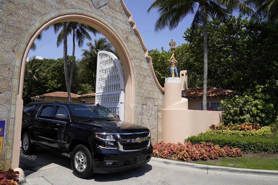 Flota crnih terenaca i drugih vozila napustila je odmaralište nešto posle 12.15 časova po lokalnom vremenu i uputila se ka aerodromu. Sam Tramp nije bio vidljiv iza zatamnjenih stakla na vozilima, dok su njegove pristalice mahale zastavama i uzvikivali podršku bivšem predsedniku SAD.