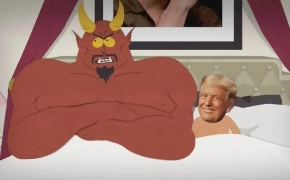 U već kontroverznoj epizodi, zbog koje neki smatraju da bi “Saut Park” mogao “ovog puta stvarno” da bude u opasnosti od otkazivanja, Tramp je nemilosrdno ismejan. On je prikazan nag u krevetu sa Satanom, a epizoda aludira i na Trampovu nagodbu sa njihovim šefovima, medijskom kompanijom “Paramaunt”, skandal sa emisijom “60 minuta” i iznenadno ukidanje emisije CBS-a “Kasni večernji šou sa Stivenom Kolberom”.