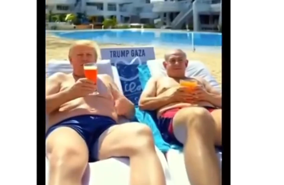 Na snimku se pojavljuje i sam Tramp, koji pleše sa ženom, a na kraju se opušta na plaži uz izraelskog premijera Benjamina Netanjahua pored bazena u jednom od njegovih hotela, sa velikim zlatnim natpisom "Tramp Gaza".