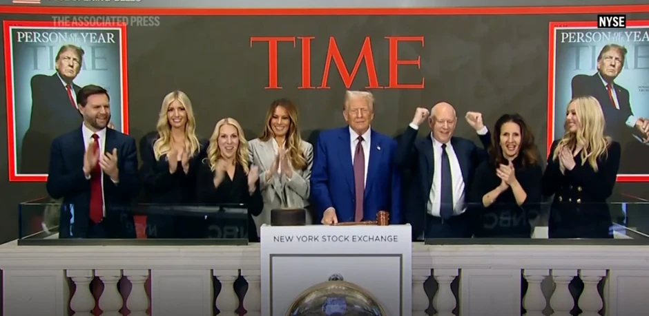 Donald Tramp je pritisnuo zvono koje, tradicionalno, označava početak rada berze. Tramp je pozvan na pomenuti događaj u zgradi NISE na Menhetnu, nakon što je po drugi put postao "ličnost godine" prema mišljenju magazina "Tajm", preneo je Si-En-Bi-Si (CNBC).
