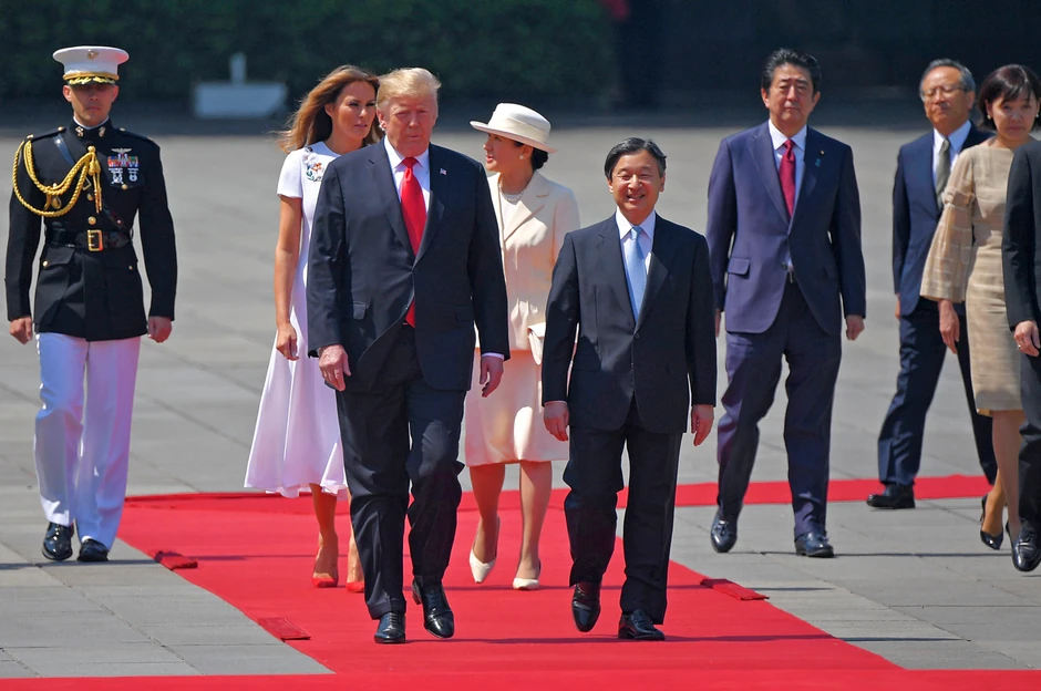 Domaćini američkom predsedniku i prvoj dami Melaniji Tramp su novi japanski car Naruhito i njegova supruga, carica Masako, prenela je agencija AP.