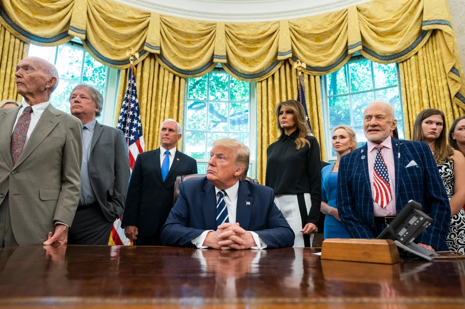 U Ovalnoj kancelariji, Tramp se sastao sa drugim čovekom na Mesecu, Bazom Oldrinom, članom misije "Apolo 11" Majklom Kolinsom i rođacima Nila Armstronga, prvog čoveka na Mesecu, prenosi Rojters.