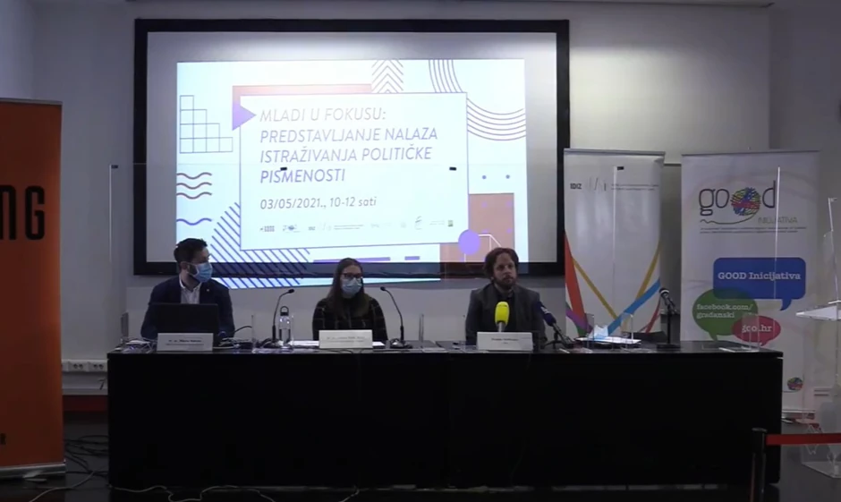Istraživanje je sprovedeno u 67 završnih razreda iz 59 srednjih škola širom Hrvatske tokom marta 2021. godine. Uzorak od 1122 učenika nacionalno je reprezentativan s obzirom na regionalne zastupljenosti i vrstu srednjoškolskog programa (gimnazijski, četverogodišnji i petogodišnji strukovni te trogodišnji strukovni). Cilj istraživanja je bio dobiti uvid u razine i strukturu političke pismenosti učenika i učenica. Istraživanjem se nastojalo ispitati politička znanja, sklonost predrasudama i stereotipima, vrednosne stavove i afinitete, razinu medijske pismenosti, građanske kulture i navike mladih.