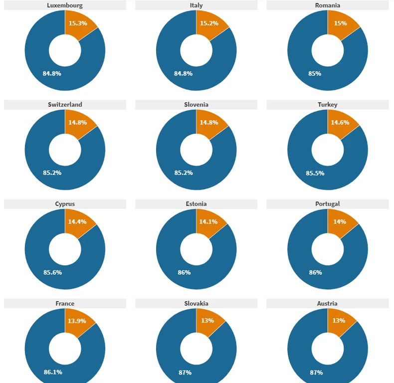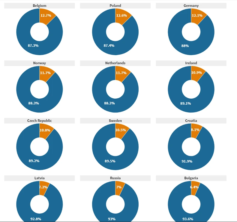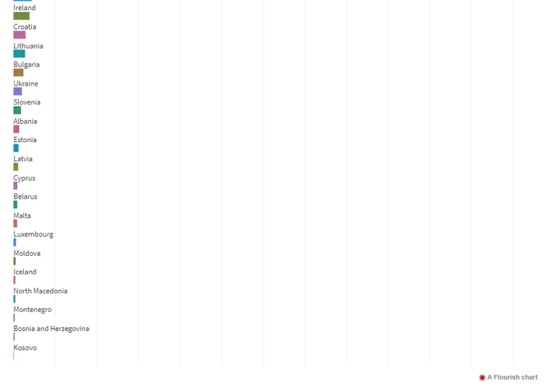 Na samom začelju liste su Island, Severna Makedonija, Crna Gora i Bosna i Hercegovina.