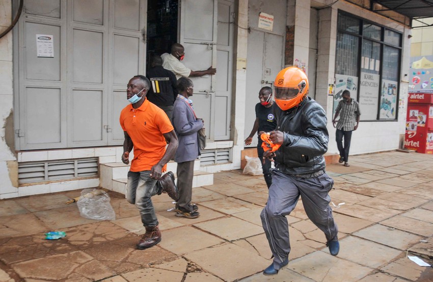 Vajnove pristalice blokirale su puteve i palile gume u glavnom gradu Kampali, a policija je koristila suzavac i pucala kako bi rasterala demonstrante.