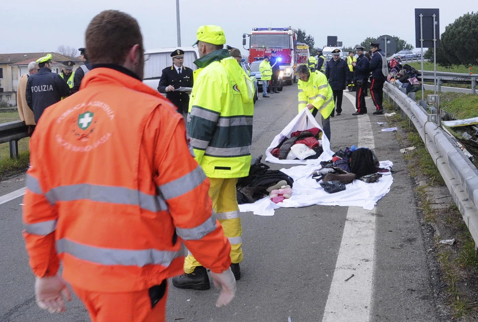 U nesreći koja se dogodila rano jutros kod mesta Masa na severoistočnoj obali Italije, poginuo je jedan učenik i dve odrasle osobe. Petoro je povređeno, od kojih četvoro veoma teško i prebačeni su u bolnicu.