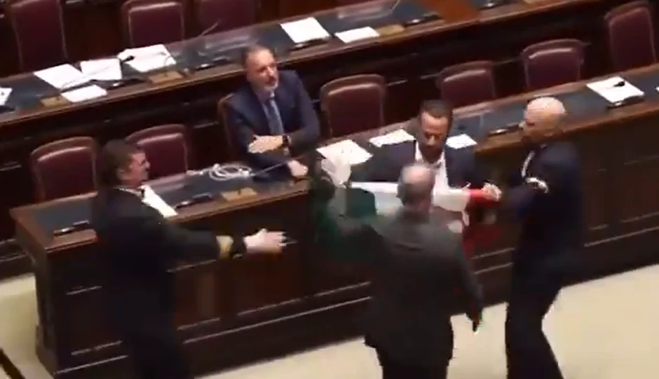 Leonarda Dona iz populističkog Pokreta pet zvezdica drugi poslanici su odgurnuli i oborili na pod u haotičnim scenama u Donjem domu parlamenta, javili su italijanski mediji.