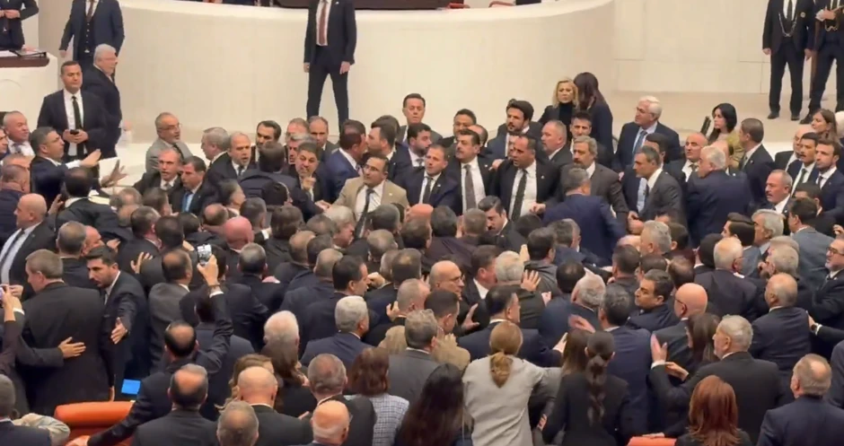 Tuča je izbila nakon što je poslanik vladajuće Partije pravde i razvoja, Mustafa Varank, izneo komentare upućene predsedniku opozicione Republikanske narodne partije (CHP), Ozguru Ozelu, tokom rasprave o budžetu u Velikoj narodnoj skupštini.