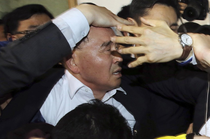 Premijera Južne Koreje Čung Honh-vona su telohranitelji morali da zaštite od boca voda, koje su na njega bacali besni rođaci nestalih putnika potonulog broda Sevol. Oko 280 ljudi se i dalje vodi kao nestali, od kojih su većina školarci.