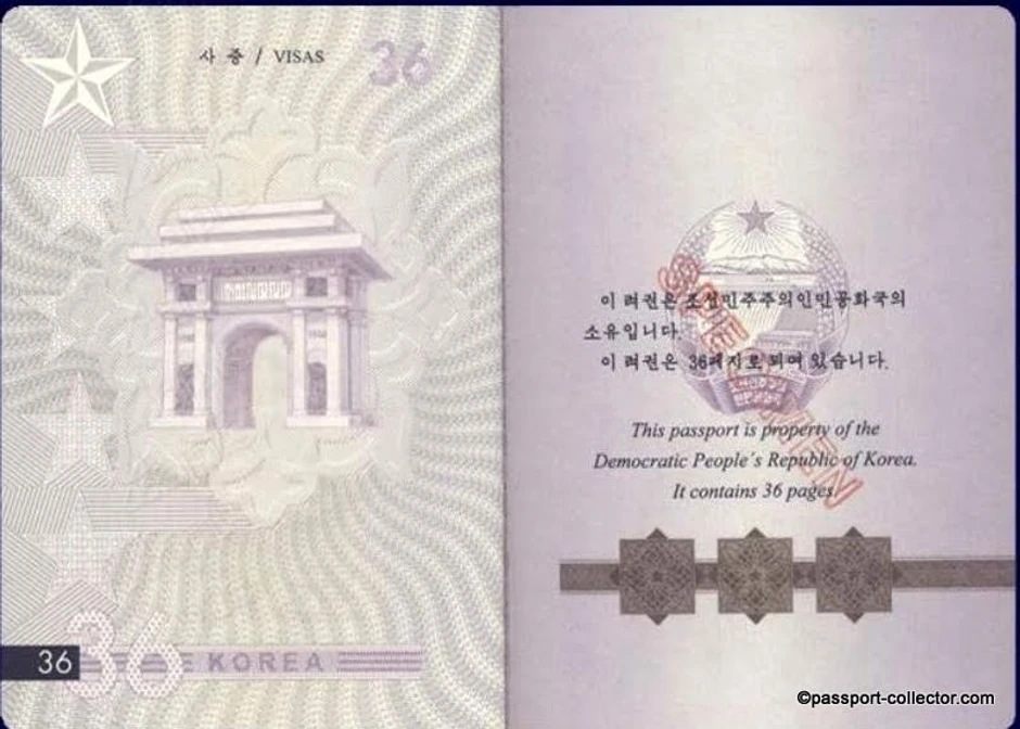 Severnokorejski pasoš ne razlikuje se mnogo od britanskog, makar po unutrašnjosti. Prve stranice pokazuju grb zemlje na jednoj, i deklaraciju o privilegijama vlasnika pasoša na drugoj strani.