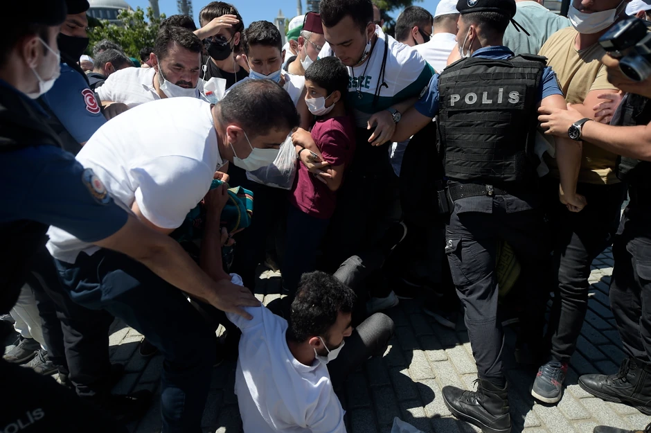 Gotovo 20.000 policajaca obezbeeđivalo je područje u blizini Aja Sofije tokom današnjeg namaza koji je prvi još od 1934. godine, a kojem je prisustvovao i predsednik Turske Redžep Tajip Erdogan.