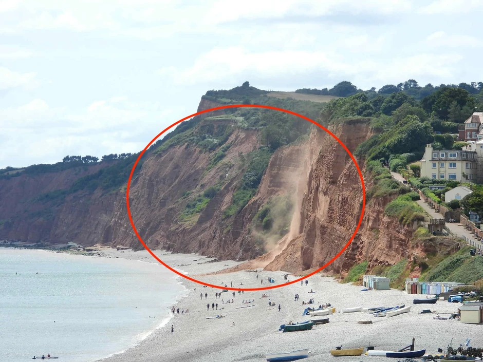 Hiljade tona kamenja palo je na plažu u primorskom gradu na obali u istočnom Devonu u Engleskoj, a kupači su jedva izašli živi i počeli da beže u panici.
