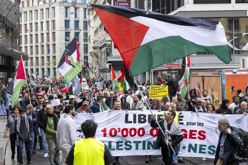 Protesti su, prema rečima organizatora, održani zbog toga što Izrael pojačava napade na Pojas Gaze i blokira dostavljanje pomoći enklavi od 2. marta, a učesnici su nosili palestinske zastave, preneli su švajcarski mediji.