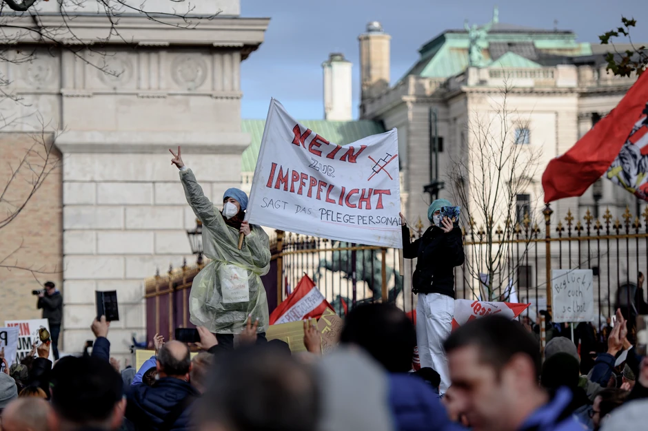 Dan pošto je austrijska vlada odlučila da od ponedeljka uvede lokdaun za sve građane i obaveznu vakcinaciju od 1. februara, protivnici korona mera organizovali su proteste u centru Beča.